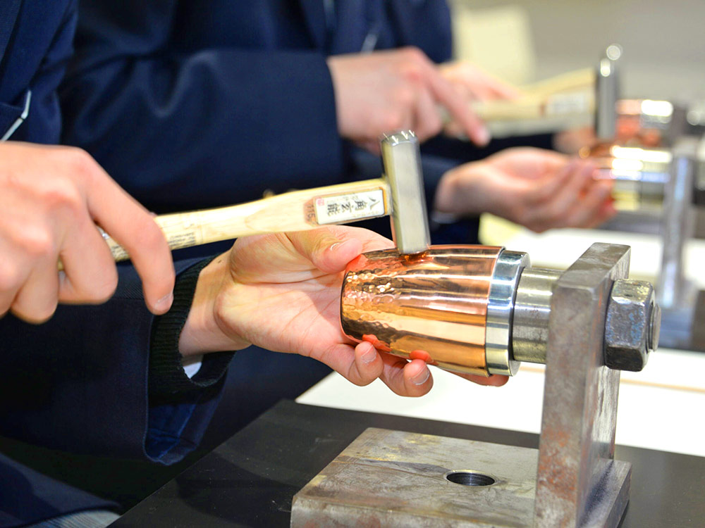 Begin with a hands-on metalworking experience, where participants try tsuiki (hammered copper) techniques under the guidance of experienced instructors, adding rhythmic hammered textures to a pure copper tumbler to take home.After the workshop, explore galleries featuring outstanding tsuiki copperware, along with mokume-gane works presented through the collection of Living National Treasure Norio Tamagawa.