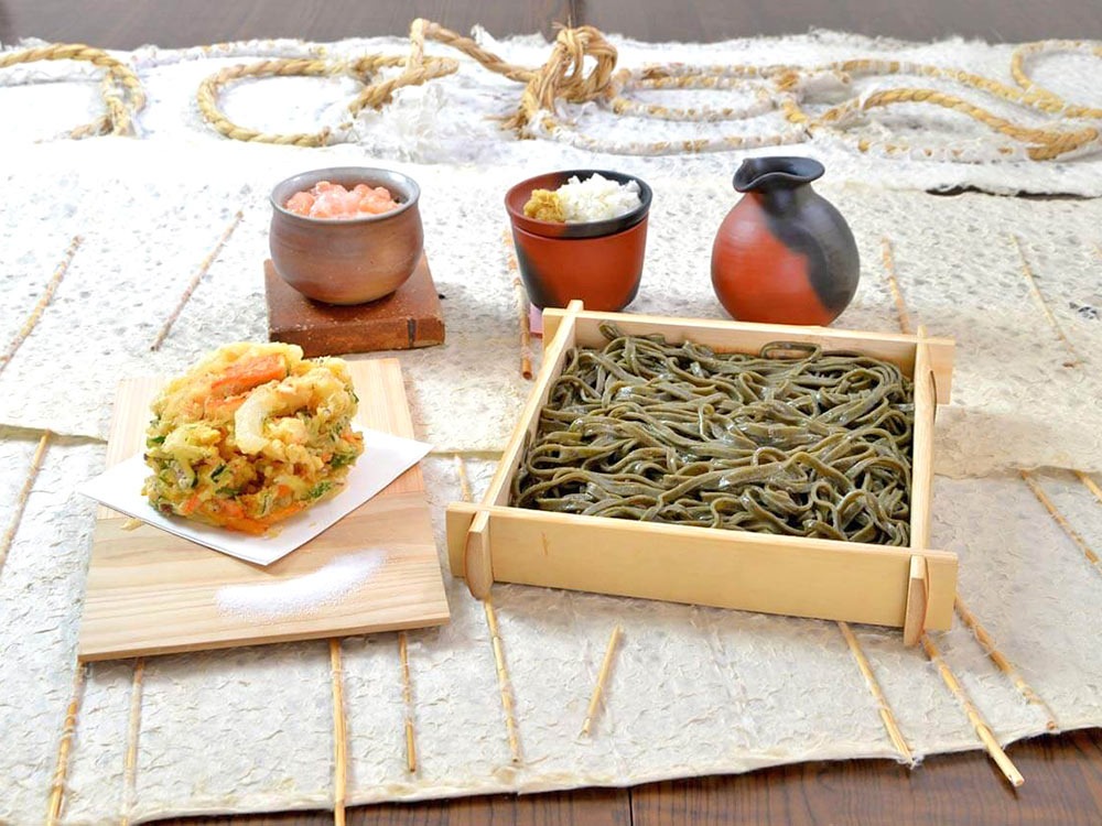 Enjoy a simple local meal featuring island udon noodles made with seaweed harvested from surrounding waters, offering a taste of everyday island cuisine.